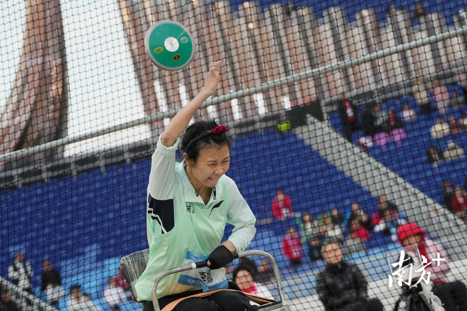 12月14日,全国残特奥会女子铁饼F53级决赛,选手正在比赛。张迪 摄