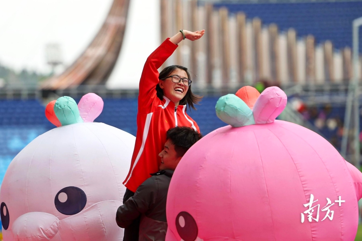12月14日,残特奥会田径赛场,湖南队选手李东阳在赛后向队友史逸婷求婚成功。郑新洽 摄