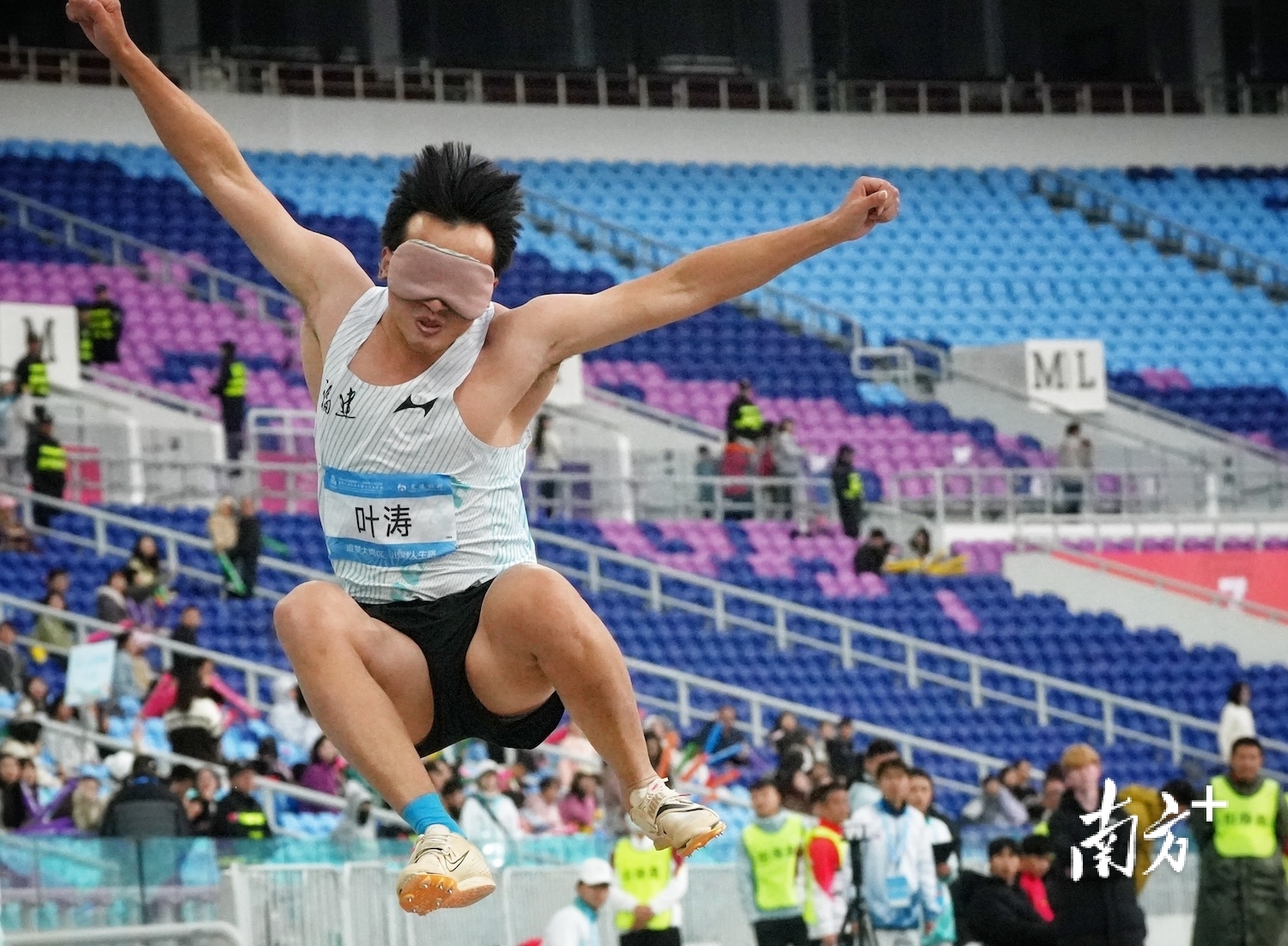 12月14日,残特奥会男子跳远T11/12级决赛,选手正在比赛。张迪 摄