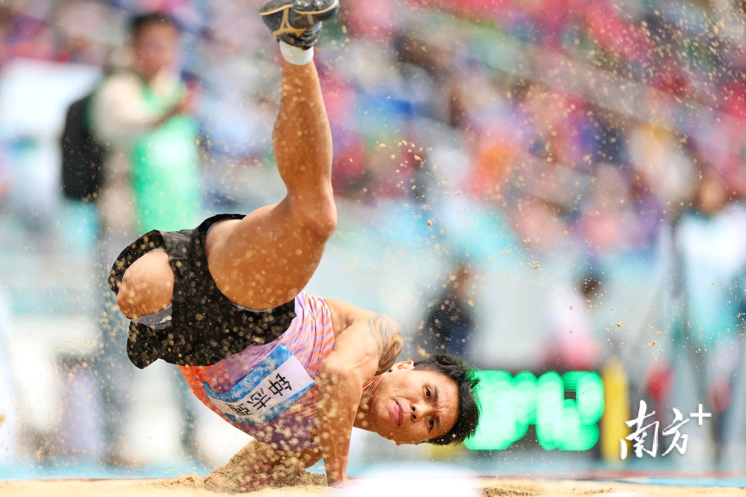 12月14日,残特奥会田径项目男子跳远T63级决赛,广东一团钟志强获得铜牌。郑新洽 摄